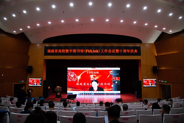 11月9日,福建省高校数字图书馆(FULink)工作会议暨十周年庆典在图书馆明德厅举行。校党委陈国龙书记、FULink专家代表方宝川教授、省教育厅高教处许广丽副处长到会致辞,会议由杨黄浩副校长主持。福建省高校数字图书馆(FULink)和福建省高校图书情报工作委员会成员共计140多人参加会议。