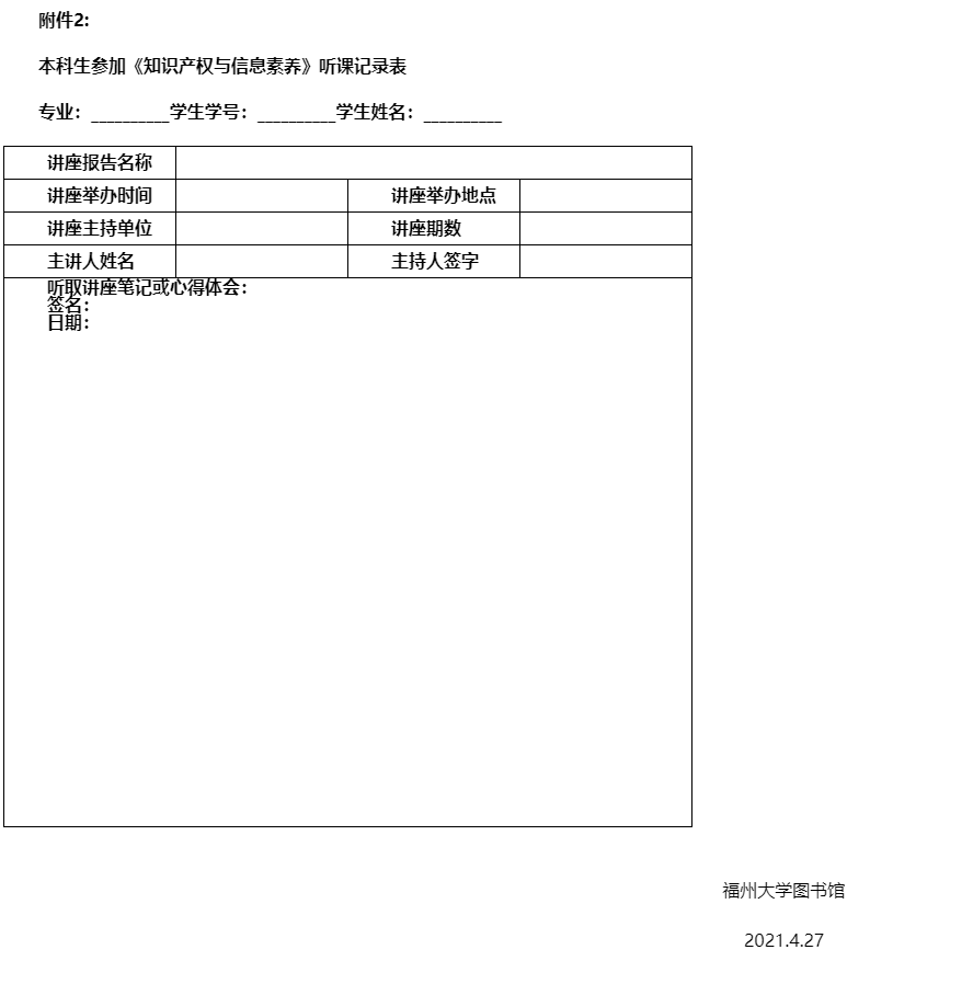 欢迎广大师生前往听讲!需要获取学分的同学应先登录教务处“本科教学系统”进行网上报名,点击“各类报名”→“信息资源讲座”进行网上报名。同时需复制附件2填写记录表,并请在讲座结束后一周内将记录表发送到邮箱(2580064938@qq.com),我们将以此为据进行教务系统考勤。