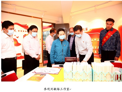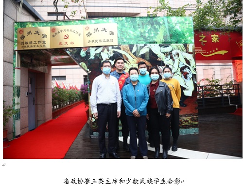 崔玉英主席来到刘敏榕工作室,校党委张天明书记对工作室和工作室党支部的情况进行了详细的介绍,崔主席对刘敏榕工作室的工作成效给予充分肯定并与少数民族学生亲切交谈,询问了少数民族学生思想、学业、生活、创业及入党情况。崔主席勉励同学们珍惜在校的学习机会,将来回到家乡贡献自己的一份力量。(文/吴佳丽 图/蓝苗 审稿/刘敏榕)