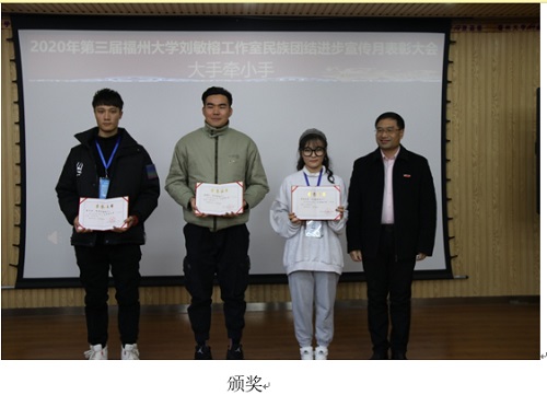 为了深入开展少数民族民族团结进步宣传月活动,全面筑牢各民族师生维护祖国统一、维护民族团结、维护社会稳定的思想基础,全面推动民族团结进步事业不断深入发展。2021年1月10日下午,福州大学刘敏榕工作室在福州大学图书馆创意空间智坤厅举办了主题为“抗击疫情·感谢有你”的第三届民族团结进步宣传月表彰大会。福建省委统战部民宗处王宁处长、校党委林生副书记及各部处相关领导出席表彰会。