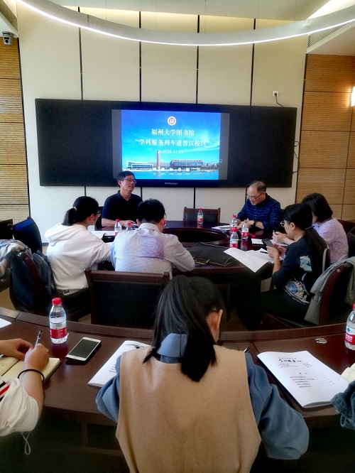 福州大学先进制造学院与海洋学院“超星杯”FULink信息检索大赛于11月26日-12月9日在晋江校区举行。为配合学院的这次活动,图书馆将“学科服务列车进校区”的第一站,设在了福州大学晋江校区。 11月25日,福州大学图书馆詹庆东副馆长带领教学与研究部、情报与自动化部主任及技术骨干一行5人到晋江校区,开展“学科服务列车走进晋江校区”的活动。先进制造学院与海洋学院李明书记、晋江校区图书馆许兆恺馆长热情地接待了图书馆学科服务组的到来。 许兆恺馆长先带大家参观了新建成的晋江校区图书馆,随后大家进行了座谈交流。詹庆东副馆长给晋江分馆带去了《福州大学图书馆学科服务清单》和第一期的《福州大学图书馆学科服务季报》。詹庆东副馆长介绍了图书馆可以为学院开展的学科服务项目,并详细解读了学科服务季报的内容,陈旭华主任、戴晓翔主任分别做了补充。随后,双方进行了业务交流,实地解决晋江IP地址显示成泉州师范学院、OPAC嵌入书后光盘、移动FULink读者数据对接等技术问题,晋江校区的用户行为数据将纳入到后续的《福州大学图书馆学科服务季报》中,构成完整的总分馆服务体系。 晚上,福州大学图书馆教学与研究部主任陈旭华老师在晋江校区礼堂为先进制造学院所有研究生及海洋学院部分本科生近五百人做了《文献调研方法与技巧》信息素养讲座,晋江校区图书馆的部分老师也参加了这次讲座。讲座后,陈旭华老师针对现场老师和学生的提问做出了专业解答和指导,讲座现场气氛活跃。 通过这次的“学科服务列车走进晋江校区”的活动,进一步加强图书馆与福州大学其他校区学院、图书馆分馆的沟通和联系,让学院全面了解图书馆的各种资源以及可提供的学科服务,让图书馆深入了解学院老师对图书馆学科服务的需求,提高图书馆学科服务的主动性、学科服务更有针对性。