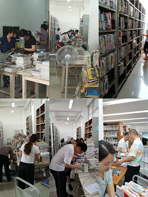 据统计,图书馆全员利用8月11日至8月20日,每天分成6个小组,共计完成3万册图书由旗山校区抽取、下架、倒架、搬运,在铜盘校区分馆所有图书按《中图分类法》细排、上架、倒架、整理等工作。