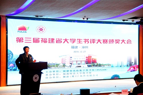 12月27日,第三届福建省大学生书评大赛颁奖大会在闽南师范大学图书馆举行。此次颁奖大会由福建省高校数字图书馆(FULink)主办、闽南师范大学图书馆承办。来自全省各高校图书馆的馆长和馆员、书评大赛获奖代表,以及漳州地区高校学生代表等80余人参加了颁奖会。