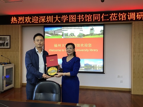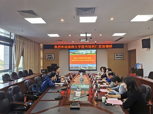 2019年11月16日下午,深圳大学图书馆宋亚伟老师一行3人莅临福州大学图书馆调研。福州大学图书馆刘敏榕馆长和詹庆东副馆长带领相关人员进行了热情接待。