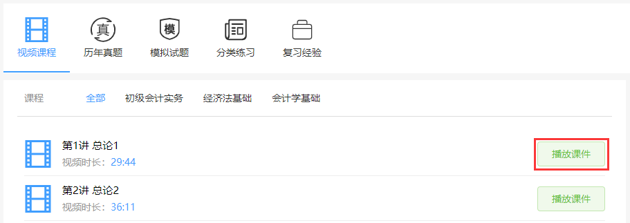 选择自己想学习和练习的课程和试卷,点击播放/答题即可。