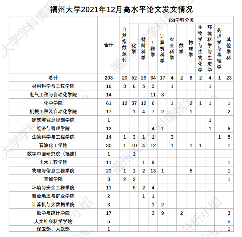 福州大学学科情报分析小组