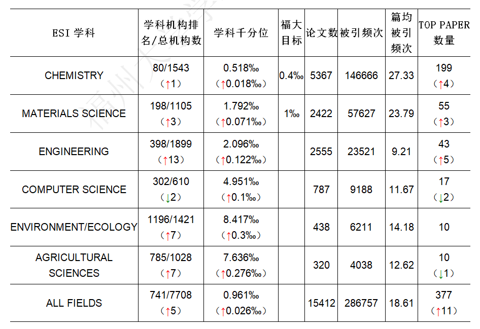 表 2福州大学ESI学科综合数据进展情报