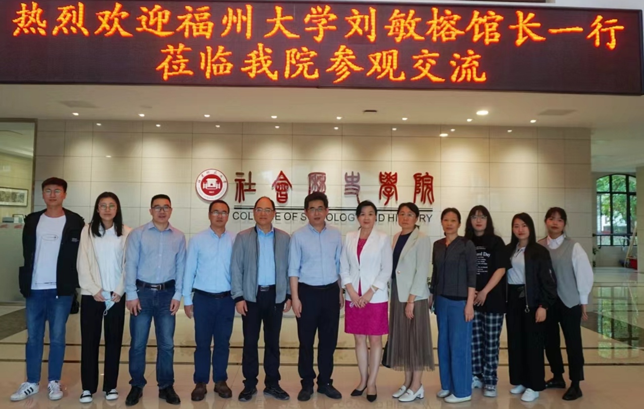 在实地走访参观了福建师范大学社会历史学院之后,刘敏榕馆长与社会历史学院党委书记陈尚旺、图书情报专业硕士点负责人傅文奇教授及各部门负责人进行深度座谈。座谈中,傅文奇教授介绍了社会历史学院图书情报专业学科建设、师资队伍以及人才培养情况。刘敏榕馆长在座谈中做了简单的总结,表示社会历史学院拥有完善的人才培养机制,人才培养成效显著。她表示通过走访调研,深刻感受到社会历史学院在培养图书情报专业硕士的实践能力拥有先进的经验,我点将充分借鉴吸收,融入到福州大学图书情报专业的人才培养全过程,进一步完善人才培养体系,更好地促进毕业生充分就业。最后,刘敏榕馆长提出,希望与社会历史学院在图书情报专业硕士点联合培养基地的建设经验等方面开展进一步交流,共同探讨图书情报学科建设发展。