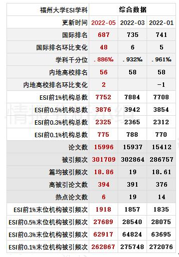 2022年05月12日,科睿唯安更新了ESI数据(2022年第3次更新,含11年的收录论文及其引文信息)。此次数据涵盖的时间范围为2012年1月1日-2022年02月28日。