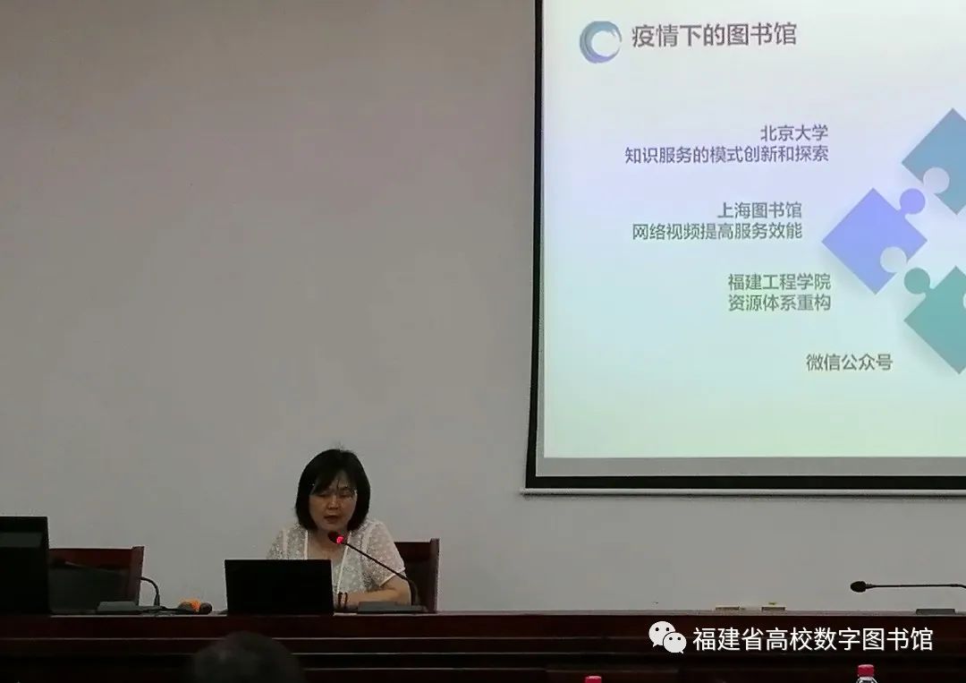 会议还邀请了福州大学图书馆情报与自动化部戴晓翔主任、闽南师范大学图书馆陈添源副馆长以及图工委相关分委员会代表做了疫情下图书馆工作的变革、智慧图书馆实践与探索等系列报告,理清今后高校图工委的工作重点与方向。