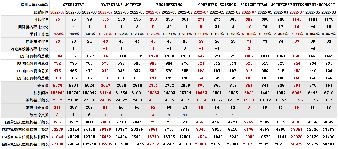 福州大学ESI学科进展情报