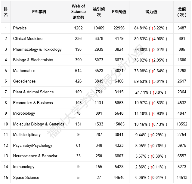 福州大学ESI潜力学科情况