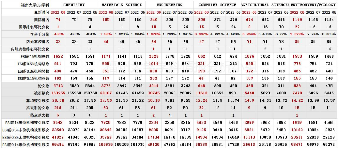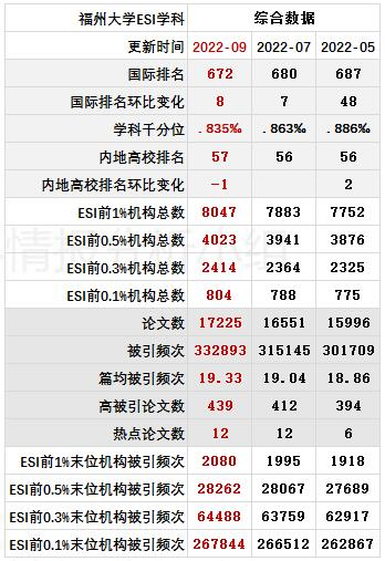 表3 福州大学ESI学科进展情报