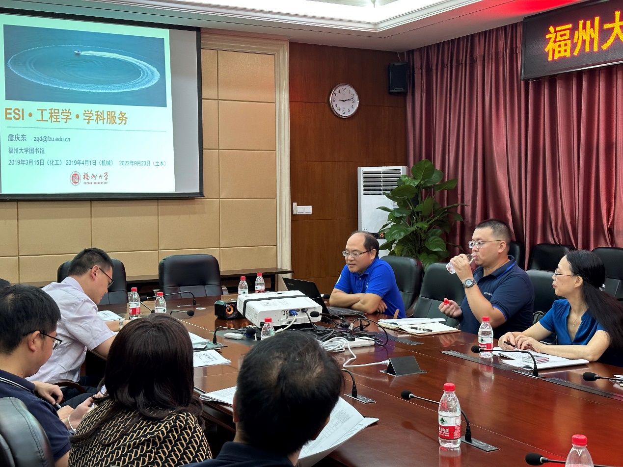 为加快推进我校“争列世界一流建设学科”攻坚战百条任务,推动我校材料科学学科进入ESI前1‰~1.5‰行列、工程学学科进入ESI前1‰行列,推动我校物理、临床医学、药理学与毒物学、生物与生物化学、数学、地球科学、一般社会科学等学科早日进入ESI前1%行列,发展规划与学科建设处联合图书馆分别于2022年9月19日下午、9月23日上午、9月30日上午,走进材料科学与工程学院、土木工程学院、物理与信息工程学院,顺利召开了三场ESI学科建设座谈会,图书馆的学科情报分析小组组长詹庆东研究馆员和情报与自动化部主任戴晓翔副研究馆员参加了座谈会。