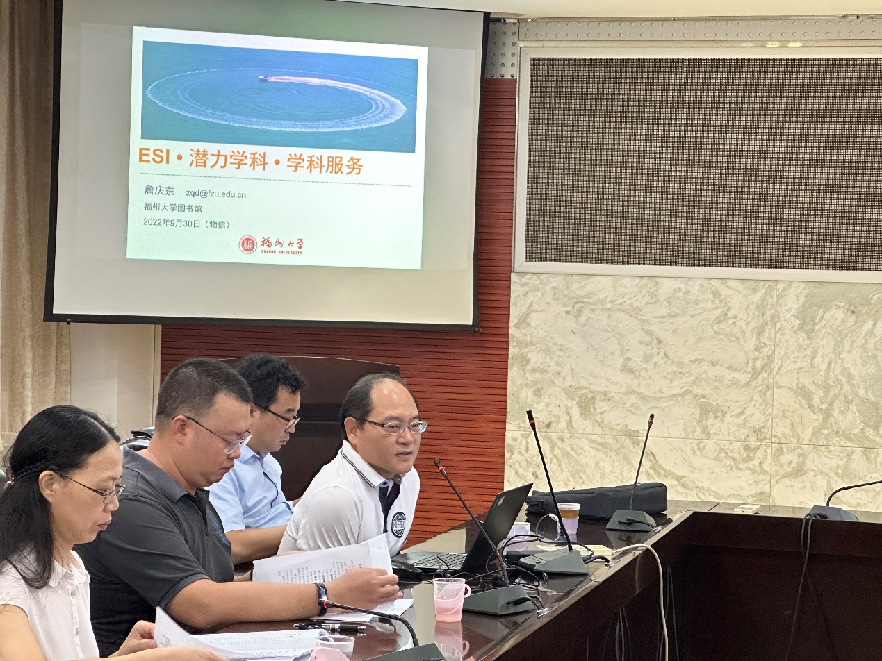 詹庆东研究馆员在物信学院作ESI潜力学科的报告