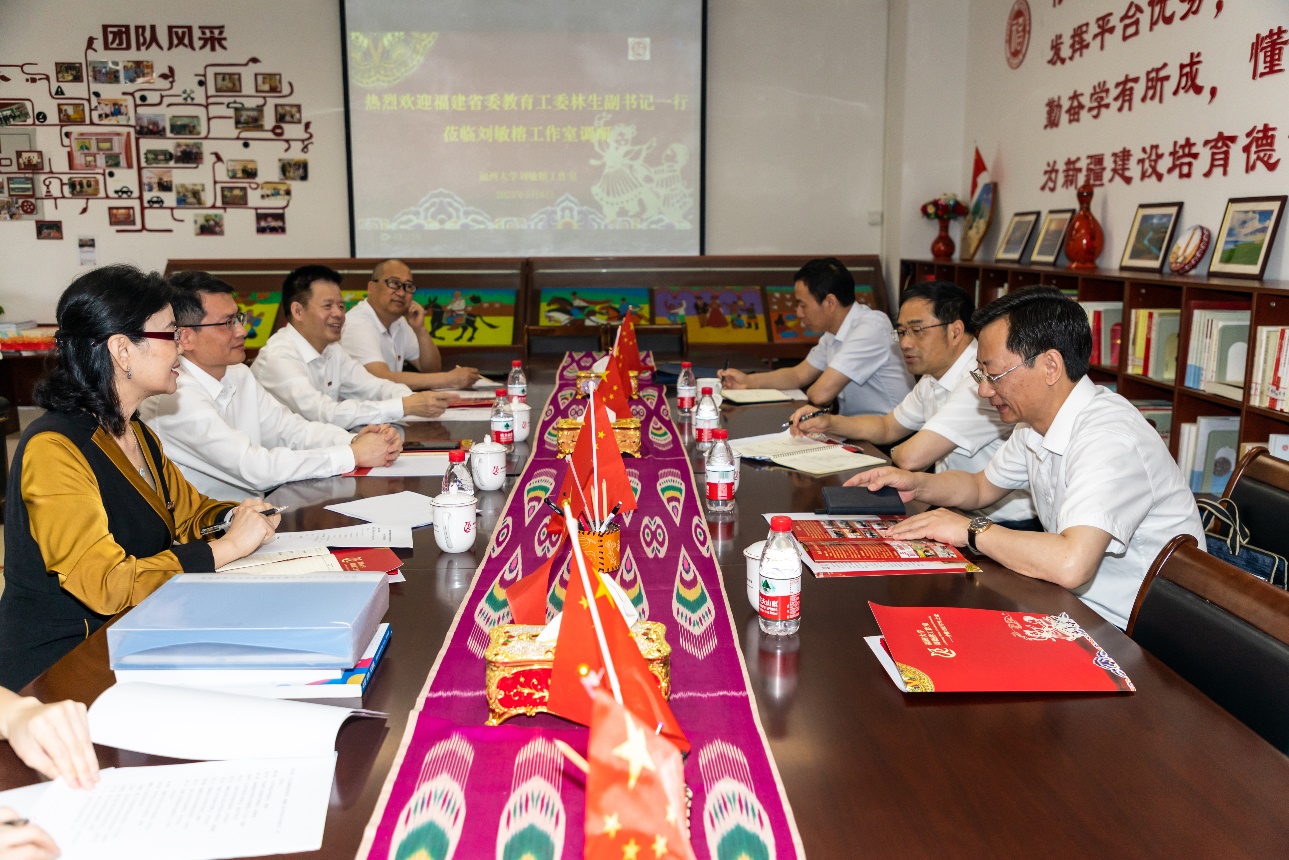 5月6日上午,福建省委教育工委林生副书记,福建省委教育工委、福建省教育厅思想政治工作处郑邦华处长,福建省教育厅统战处张明坤处长一行来到福州大学刘敏榕工作室进行调研座谈。校党委黄身勇副书记和校统战部、刘敏榕工作室负责人等相关工作人员一同参与调研座谈。