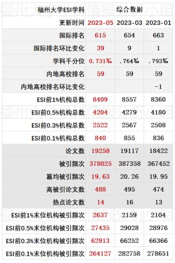 2023年05月11日,科睿唯安更新了ESI数据(2023年第3次更新,含10年2个月的收录论文及其引文信息)。此次数据涵盖的时间范围为2013年1月1日-2023年02月28日。
