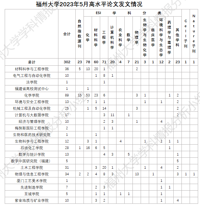 为了方便我校教学科研、科研管理等相关人员及时了解、跟踪本校高水平论文的收录情况,福州大学学科情报分析小组利用WoS数据库对近期作者单位为“福州大学”的论文进行了收集整理统计,更新时间为2023年06月01日。