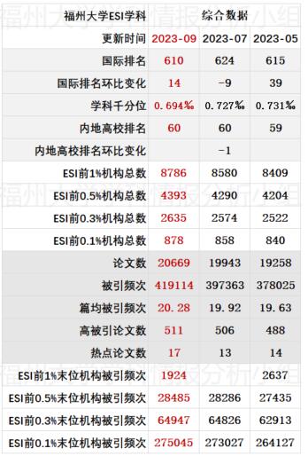 2023年09月14日,科睿唯安更新了ESI数据(2023年第5次更新,含10年6个月的收录论文及其引文信息)。此次数据涵盖的时间范围为2013年1月1日-2023年06月30日。