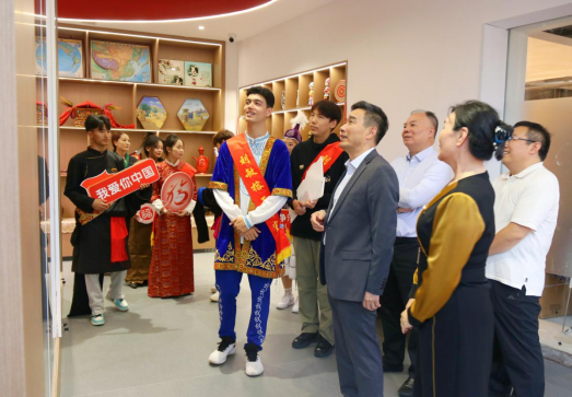 讲解员向闽南师范大学党委书记吴彬镪一行介绍民族服饰