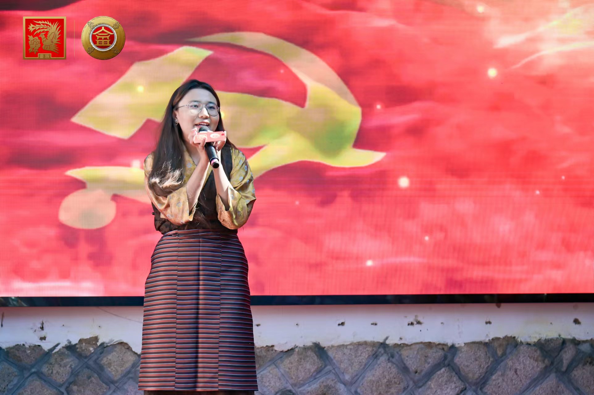 蒙古族同学吾尔格力与畲家企业商会副秘书长雷林清共同主持各民族文艺展演