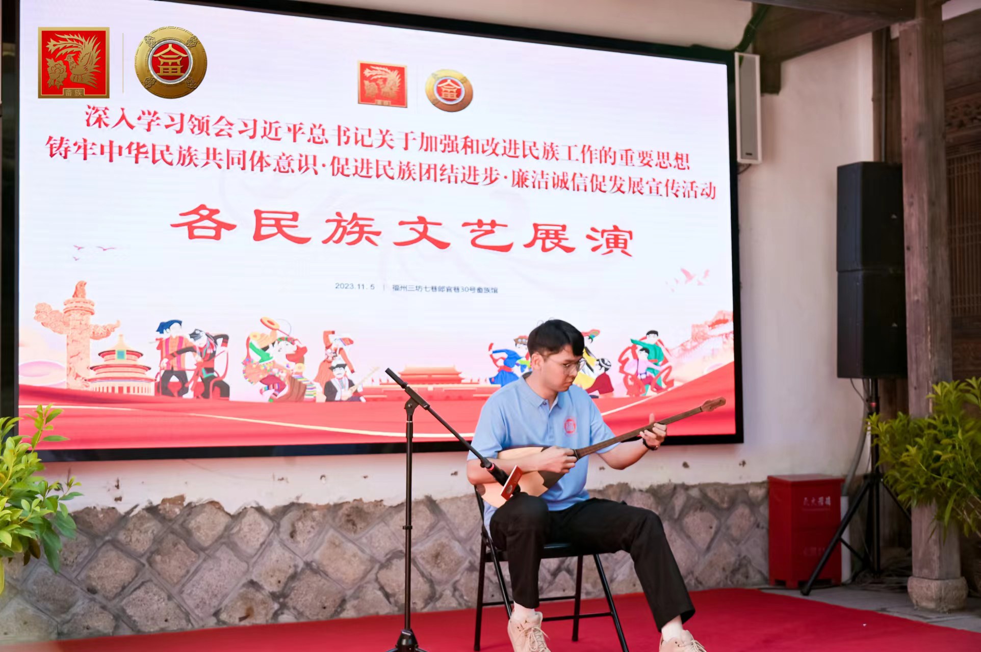 11月5日,由福建省委统战部、省民宗厅、省工商联等[1] 相关共建党支部指导,福建省畲家企业商会党支部主办,福州大学刘敏榕工作室协办的畲家商会促进民族团结进步廉洁诚信发展宣传活动在三坊七巷畲族馆顺利开展,福州大学刘敏榕工作室成员与福建省畲家企业商会共同举办铸牢中华民族共同体文艺展演。
