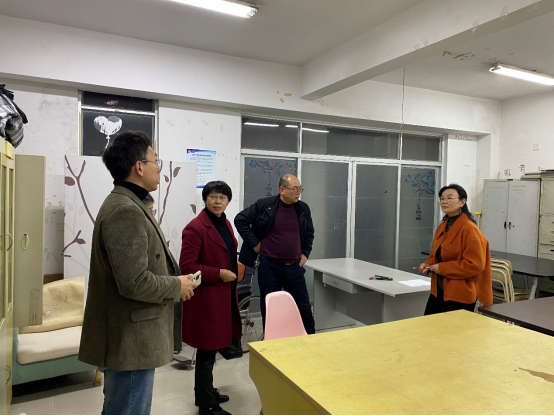 调研过程中,刘敏榕馆长带领大家细致察看了党建活动室现场,并向学院辅导员、学院社区建设负责人刘涛,15号楼楼宇党支部书记伦婉潼详细了解了楼宇学生党员开展活动情况、现有空间使用情况。通过现场调研,刘敏榕馆长代表图书馆表达了要充分利用图书馆的资源,为社区学生送图书、送书架,建党团活动室,切实为社区学生改善和提升学习环境的做法。在调研现场,刘敏榕馆长以十分务实的精神和高效的作风,立即调集了2位设计、施工人员一起来现场探讨,并当场提出了图书馆为该党团活动室内部空间提升内涵建设的思路和计划,提出了党建墙、党员风采墙、学习园地等改造具体设计方案,并要求施工人员利用元旦放假期间做好该活动室内部墙体的粉刷整修工作,预计10日内完工,正式启用,为社区学生提供一个优美、温馨、富有教育意义的阵地。