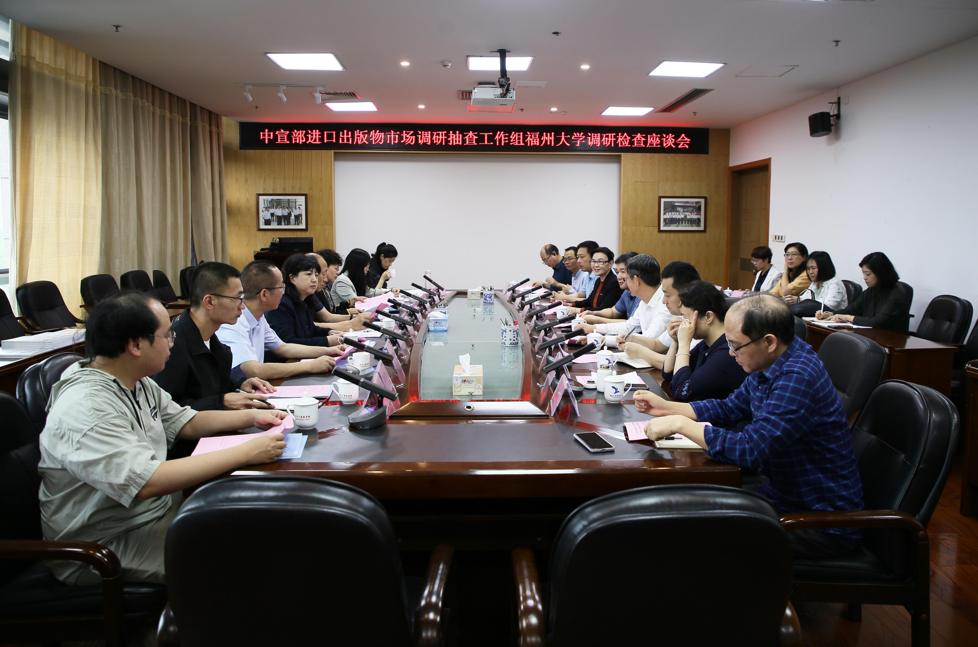 4月16日上午,中宣部对福建省进口出版物市场调研抽查工作组一行莅临我校调研检查。调研检查座谈会在图书馆422会议室举行,王心晨副校长出席座谈会,宣传部、图书馆、对外合作与交流处、梅努斯国际工程学院、福州大学学报(自科版)(社科版)相关负责同志参加会议。
