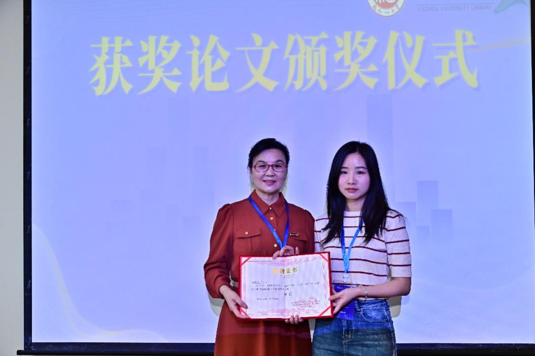 在馆员获奖论文分享中,福州市图书馆蔡晓玲馆员以及中国科学院福建物质结构研究所图书情报中心张丽英副研究馆员为大家分享了她们在图书情报领域的实践经验和研究成果。