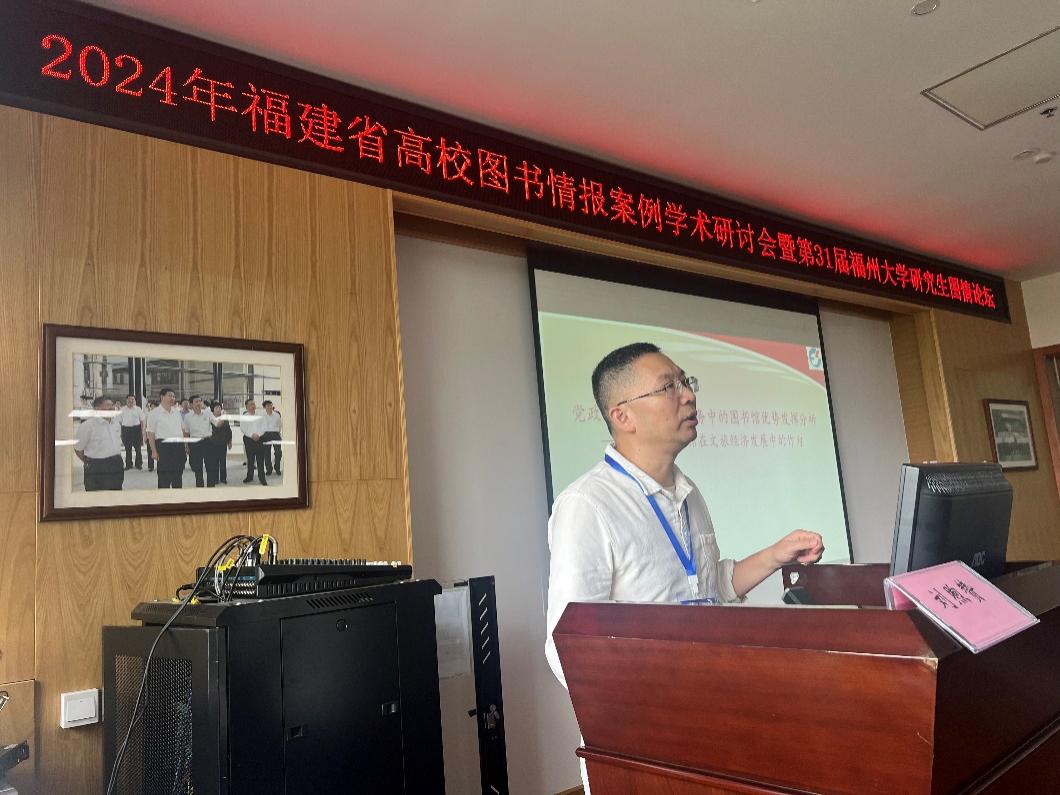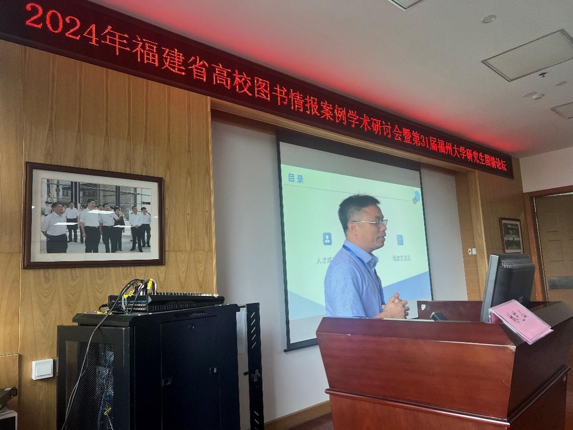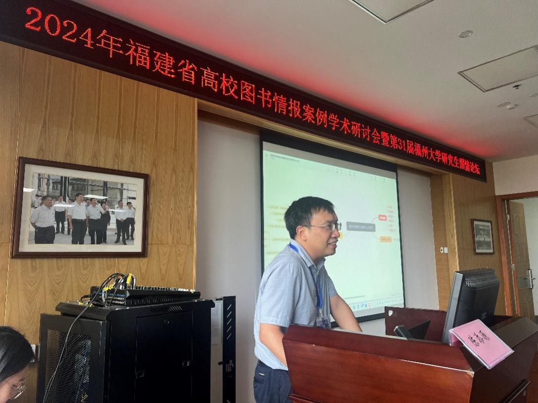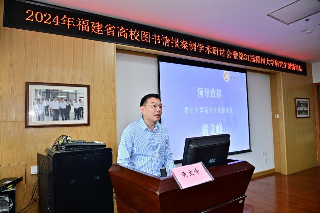 论坛帷幕在福州大学研究生院黄文峰副院长的致辞中徐徐拉开,黄文峰副院长介绍了福州大学研究生教育的情况,并表明我校将一如既往地为研究生提供优质的教育资源和服务,积极推进学术研究和学科建设。希望图书馆以本次研讨会为契机,加强与各高校图情专业院系、图书馆和企业的联系与合作,提升研究生的培养质量。