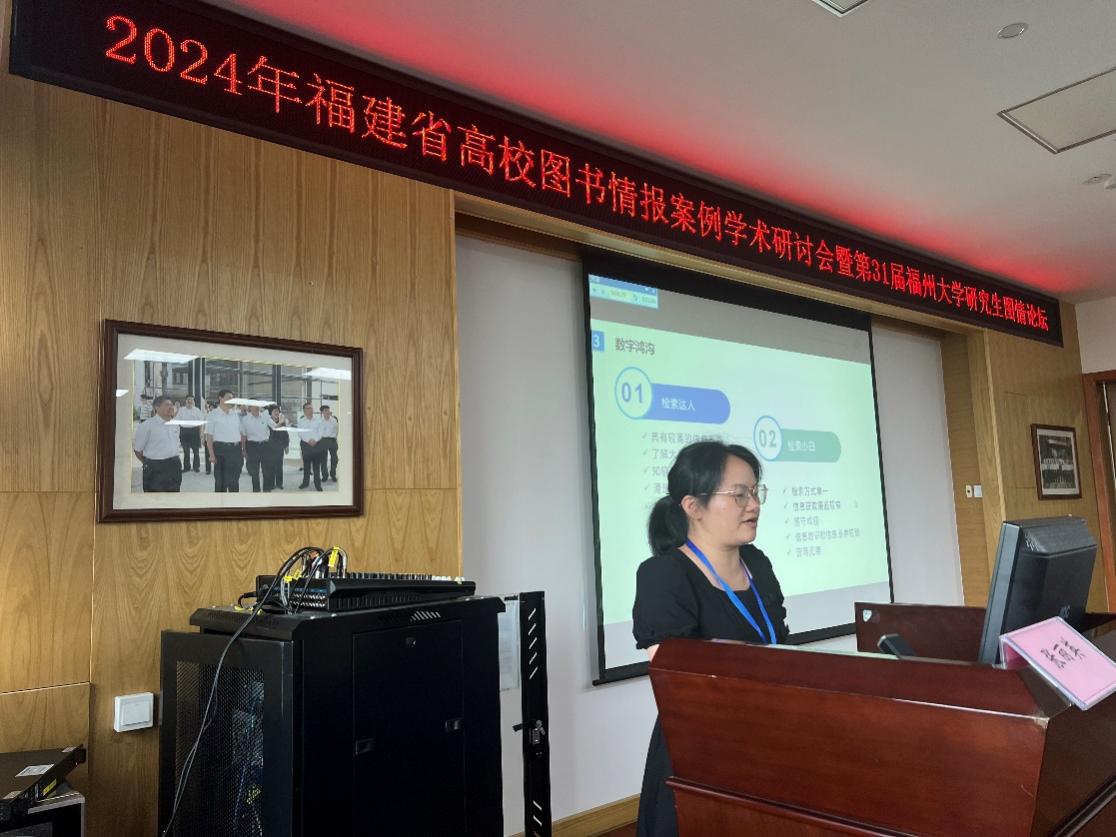 5月25日,福建省高校图书情报案例学术研讨会暨第31届福州大学研究生图情论坛在福州大学图书馆北楼422举办,本次会议由福建省高等学校图书情报工作委员会、福建省高校数字图书馆(FULink)主办,福州大学研究生院和福州大学图书馆承办。来自中国科学院福建物质结构研究所、福建省图书馆、福建省知识产权保护中心、福建省科技信息研究所、厦门大学、福建师范大学等单位逾100位老师和同学参加此次会议。