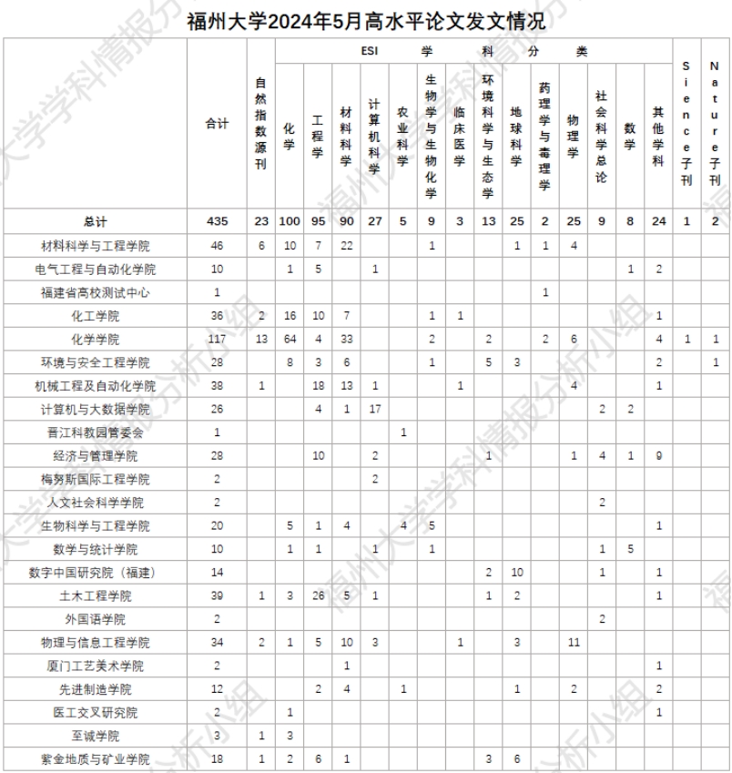 为了方便我校教学科研、科研管理等相关人员及时了解、跟踪本校高水平论文的收录情况,福州大学学科情报分析小组利用WoS数据库对近期作者单位为“福州大学”的论文进行了收集整理统计,更新时间为2024年5月31日。