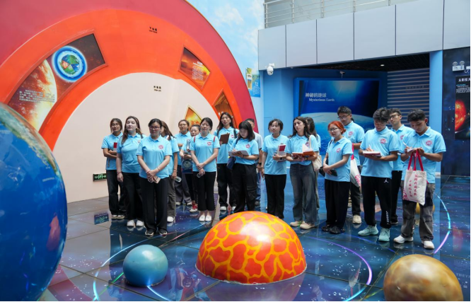 授牌仪式结束后,实践队与负责人一同前往紫金矿业博物馆。在博物馆内,讲解员悉心讲解,让大家深入了解到紫金矿业与日常生活的密切联系,还为大家呈现了我国采矿选矿冶金行业的发展历程。丰富的矿品展示更是让众人眼前一亮,直观感受到了矿产资源的神奇与魅力。同时,详细阐述了紫金矿业在可持续发展方面所作出的贡献,如资源的合理开发利用、环境保护措施以及对社区发展的支持等。