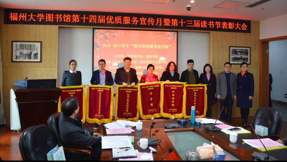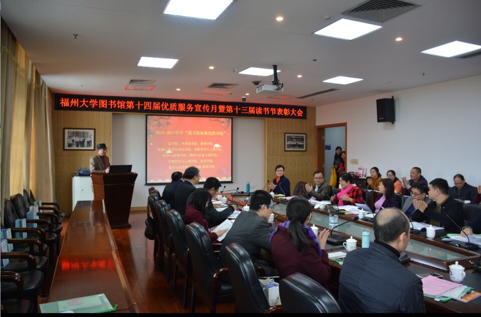 2018年1月19日上午,福州大学图书馆工作指导委员会会议暨图书馆第十四届优质服务宣传月表彰大会在图书馆举行。本次会议由刘敏榕馆长主持,图书馆工作指导委员会委员以及获奖代表共计五十余人出席了会议?;嵋榉治较钜槌?,一是图书馆第十四届优质服务宣传月表彰会,二是福州大学图书馆工作指导委员会会议。