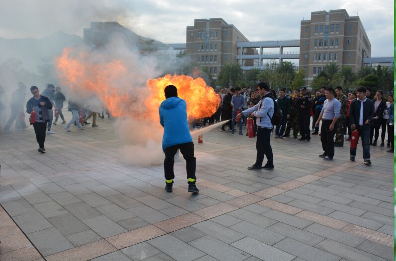 接着,在图书馆福万广场由上街消防中队官兵和保卫部工作人员向现场人员讲解了灭火器的使用原理以及注意事项,并演示了灭火器的正确使用方法。随后,图书馆工作人员和学生进行了干粉灭火实战演习,每位员工和学生情绪饱满,积极参与,有序地完成了灭火任务。