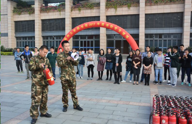 为加强消防安全意识,普及消防安全知识,提高师生应对火灾危险的应急处理能力,推进图书馆的安全保障工作,福州大学图书馆在校保卫部的指导下于2017年11月28日下午在图书馆内外开展了消防应急疏散演练及灭火器使用演示活动。