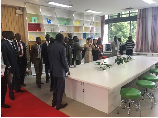 2017年9月21日上午,来自乍得的外交与礼宾官员研修班学员一行20人到我校图书馆创意空间参观。