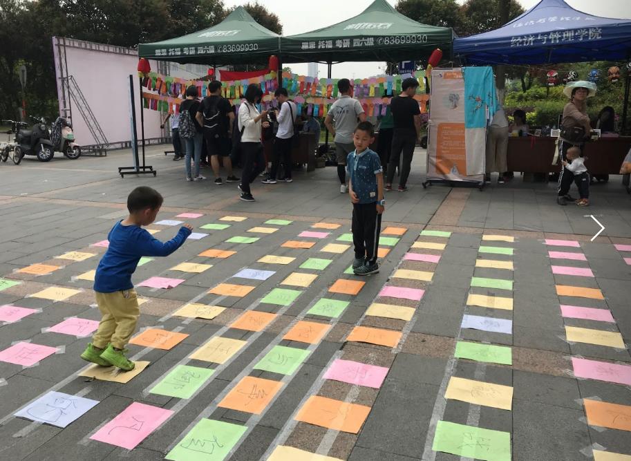 1、“跳一跳——成语接龙”活动。现场让人眼前一亮的活动是探海读书社的“跳一跳”。微信程序“跳一跳”是新时代创意产物,我们将跳一跳与成语接龙完美的结合在一起,吸引了许多同学参与。