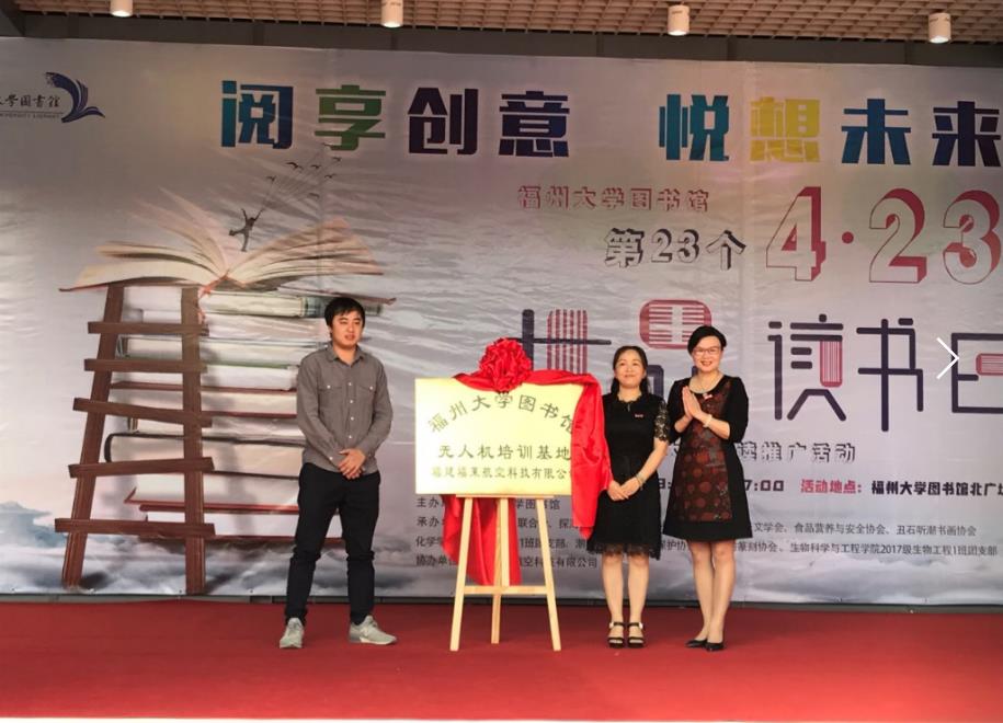 在“大众创业,万众创新”背景驱动下,我们图书馆也紧跟时代步伐,创建创意空间,努力把创意空间打造成为“信息共享空间、知识传播空间、智慧服务空间和创新新创业人才培训空间。”今天,我们通过校企合作与福建福莱航空科技有限公司成立了无人机实训基地。由福州大学图书馆刘敏榕研究馆员和福建福莱航空科技有限公司总经理王辉共同为无人机实训基地揭牌。