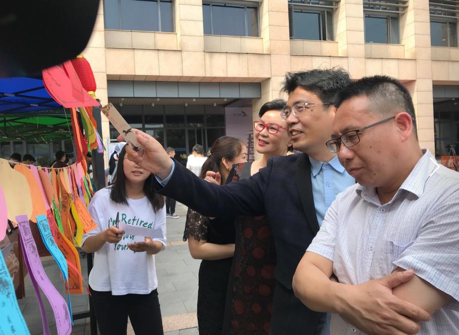 4、灯谜竞猜:一串串色彩斑斓的彩纸灯笼被挂在帐篷外,灯笼上的谜语更是无所不有,字谜、历史谜、生活物品谜……不少同学们来到竞猜区,在纸上写下自己的答案,收获了精美的礼品和知识的传承。