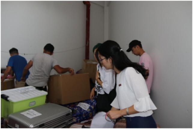 “石榴籽同心社”的成员们今天的第一件事就是帮助13名经济与管理学院的少数民族同学运输25件行李到怡山校区。同时,帮助旗山校区的42名少数民族新生将行李运送至生活区门口。成员们的辛勤付出也为新生们带来了福州大学刘敏榕工作室——少数民族学生之家的第一份温暖。