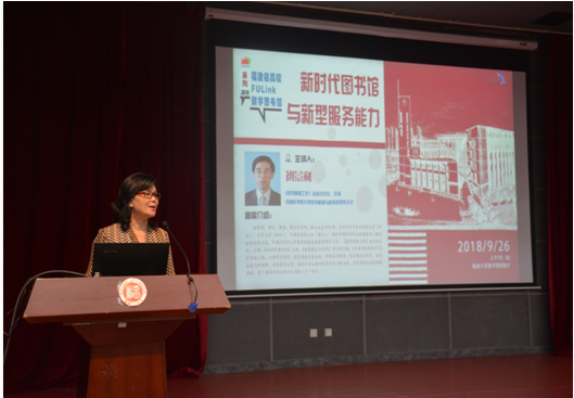 2018年9月26日上午,中国科学院大学图书情报与档案管理系主任、《图书情报工作》杂志社社长、主编初景利教授应邀来福州大学图书馆做了题为 “新时代图书馆与新型服务能力”的学术讲座。福建省高校数字图书馆(FULink)各成员馆职工纷纷前来聆听。 讲座由福建省高校数字图书馆(FULink)秘书长、福州大学图书馆馆长刘敏榕研究馆员主持。