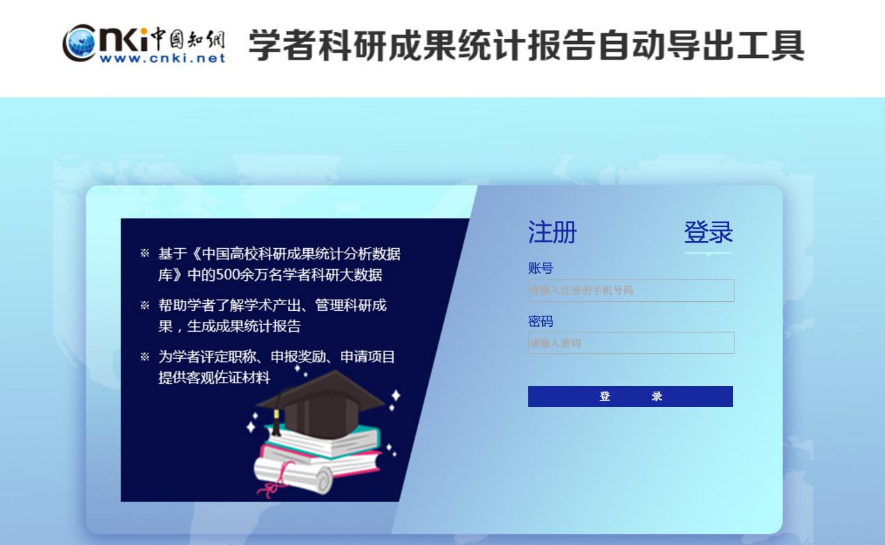 “学者科研成果统计报告自动导出工具”登录网址为: