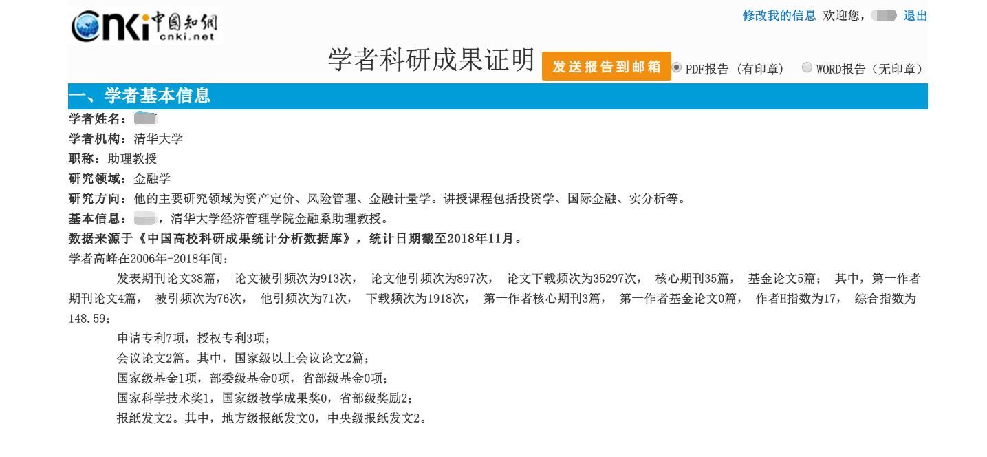 “学者科研成果统计报告自动导出工具”——PDF版报告
