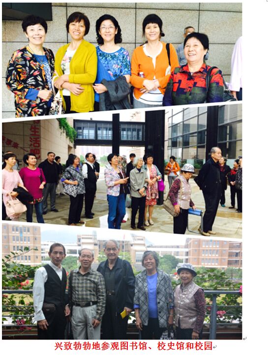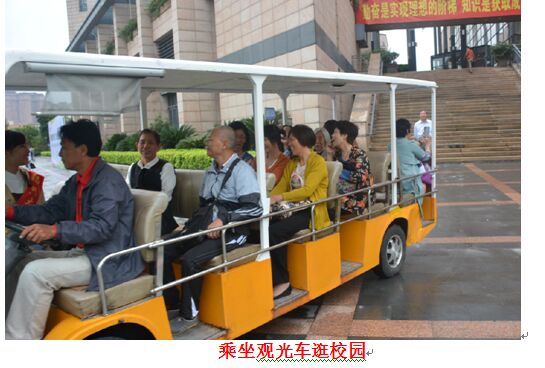 会后,馆领导陪同老同志们参观了月相园、图书馆、校史馆和校园。月相园优美的环境、图书馆现代化的建筑设施、整洁舒适的阅读环境都让老前辈们赞不绝口,校史馆使老同志们回忆起学校的发展历程。最后他们兴致勃勃地乘坐了福大校园观光车参观游览了美丽的校园。呼吸着雨后清新的空气、望着满眼怡人的绿色风景,老同志们在驰骋行驶的电瓶车上留下一路欢歌笑语。