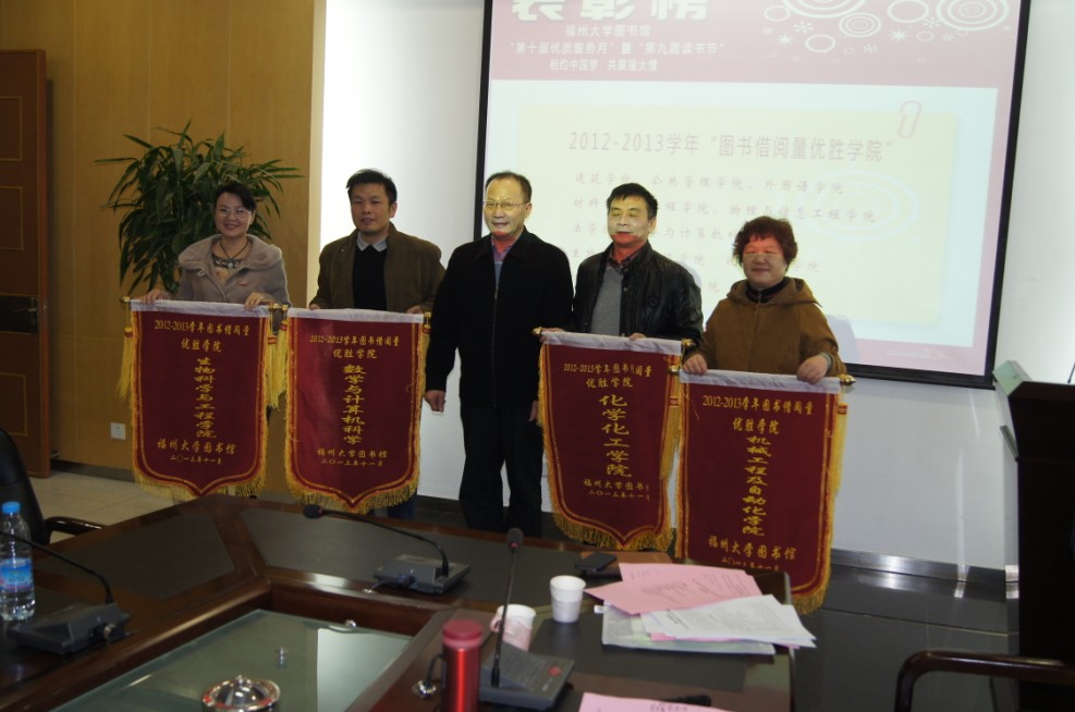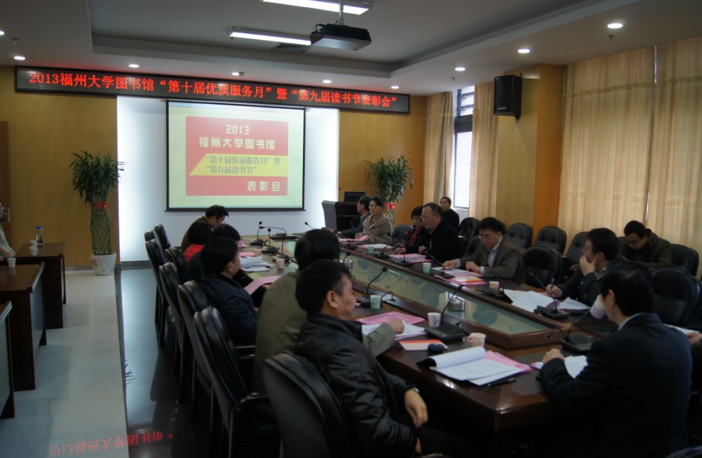 表彰大会首先听取了汤德平馆长对图书馆优质服务月暨读书节活动的总结;然后由刘敏榕书记宣读了获奖单位和个人名单;与会的图书馆工作委员会代表给获奖单位和个人颁发了奖项。