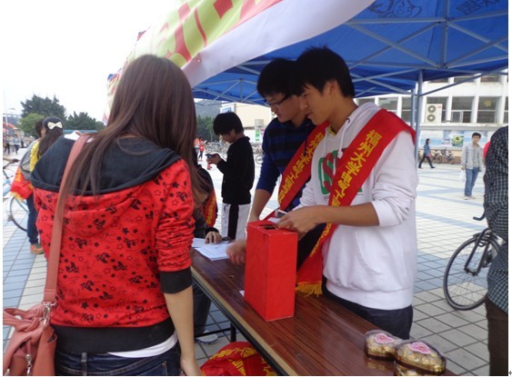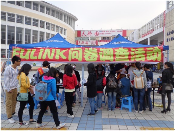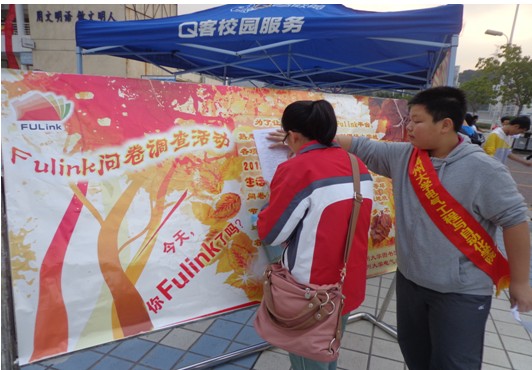 为了让更多师生了解Fulink平台,熟悉Fulink平台的各项资源,利用好大学城各项文献信息资源,成为全面发展的高素质人才。福州地区大学城文献信息资源共享平台竞赛将于2012年11月8日下午14:30在福州大学图书馆博学厅隆重举行。此次问卷调查主要是普及Fulink平台信息,同时为Fulink平台竞赛作前期宣传。活动现场设有游戏、抽奖等环节,同学们可凭问卷参与抽奖。在活动帐篷前的宣传展板上,详细地介绍了Fulink平台相关的各种信息,主要围绕Fulink平台是什么、Fulink平台有什么、Fulink平台怎么用、Fulink平台使用技巧展开。