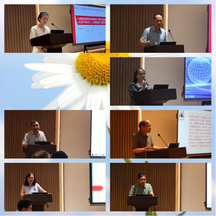 福建省高校图工委和FULink副秘书长詹庆东主持议题四“AI赋能高校图书馆在教学科研的服务场景及业务创新”的研讨,福州大学图书馆情报与自动化部主任戴晓翔、福州大学图书馆馆员李腾分别分享了《Ima知识库在图书馆中的应用思考》《国内外高校图书馆AI素养教育实践探讨》领读报告,与会馆员也积极分享了在教学科研服务场景中的真知灼见。报告内容既有战略前瞻,也有实践案例,涵盖人工智能能力框架、素养教育、知识库应用、智慧转型等多个方面。与会馆员们互动频频,既有对未来路径的展望,也有对现实工作的经验总结,现场氛围热烈而富有思辩色彩。