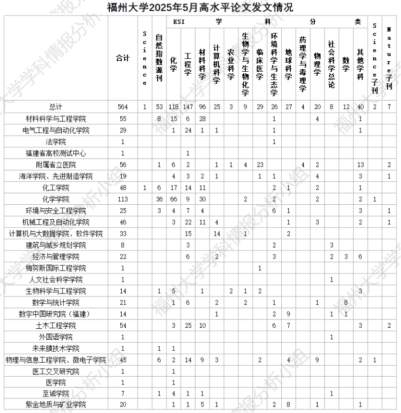 为了方便我校教学科研、科研管理等相关人员及时了解、跟踪本校高水平论文的收录情况,福州大学图书馆学科情报分析小组利用WoS数据库对近期作者单位为“福州大学”的论文进行了收集整理统计,更新时间为2025年5月31日。
