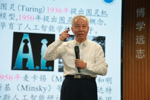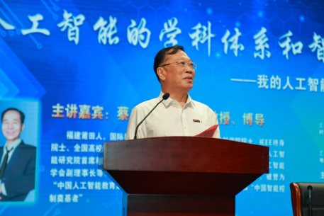 9月11日下午,福州大学第708期嘉锡讲坛在图书馆博学厅隆重举行。本期讲坛由福州大学图书馆、计算机与大数据学院及教务处共同主办。中南大学教授、博士生导师,国际导航与运动控制科学院院士、纽约科学院院士、IEEE终身院士蔡自兴教授应邀做客嘉锡讲坛,以《人工智能的学科体系和智能驾驶——我的人工智能研究和教学汇报》为题,为福州大学师生带来一场关于人工智能前沿发展的学术盛宴。福建省人大常委会委员、福州大学党委书记陈国龙主持本期嘉锡讲坛,计算机与大数据学院、机械工程及自动化学院、电气工程与自动化学院等500余名师生参加。